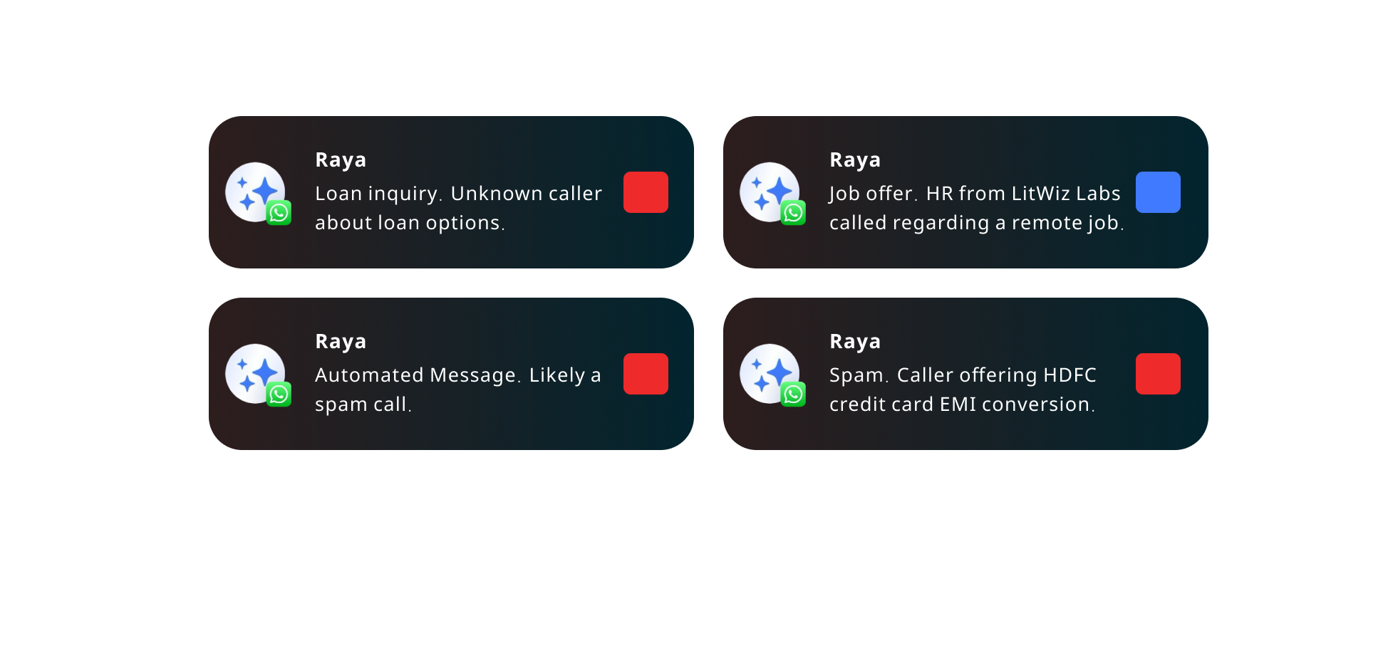 Raya intelligently handles your incoming calls, filter out spam and scams, only focus on what matters.
